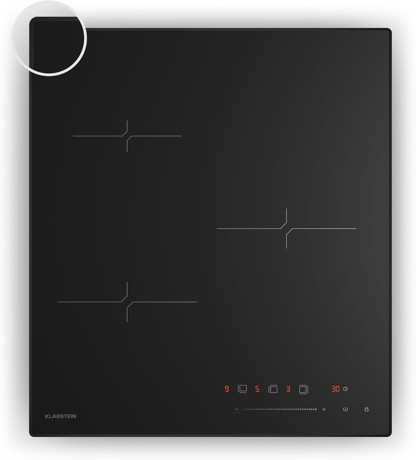 Klarstein Velaire Piano Induzione 45cm - 3 Zone, 5500W, Cursore Touch, Timer, Blocco Bambini, Calore Residuo, Vetro Nero, Piastra Induzione Compatta per Cucina Moderna